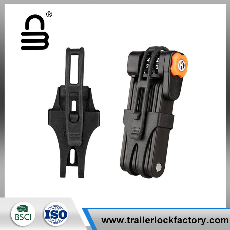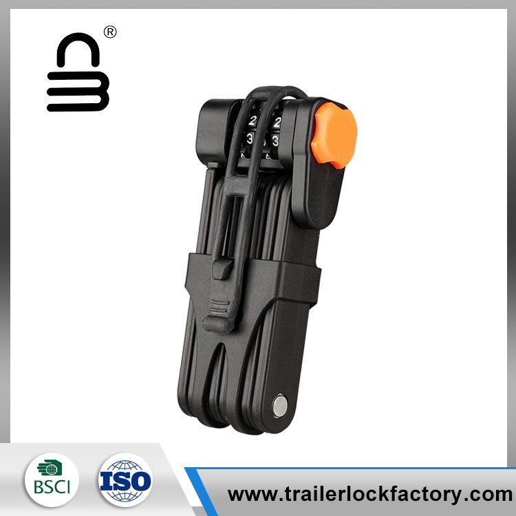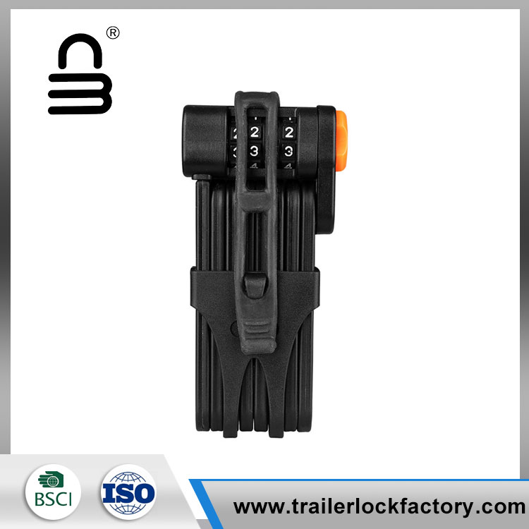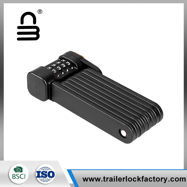 ضد کوبیدن و خراشیدن، حساس به حرکت. طراحی تاشو باعث می شود قفل دوچرخه به راحتی حمل شود و در بند قابل حمل قرار گیرد. قفل تاشو ترکیبی از طرح کد چهار رقمی با حدود 10000 ترکیب کد استفاده می کند که شکستن آن آسان نیست.